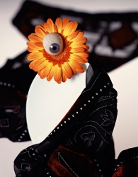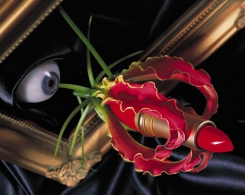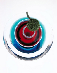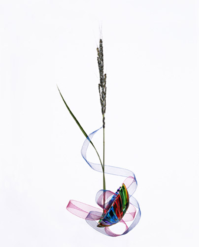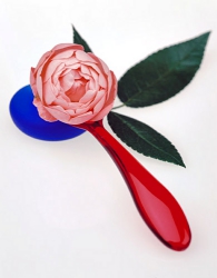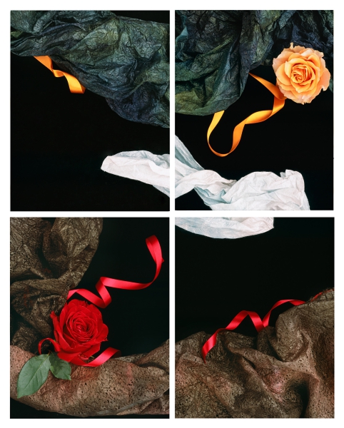 Kao'ru établi des relations entre les couleurs naturelles des fleurs et celles, artificielles, des objets produits par l'homme: le rouge et le bleu qui expriment la vie.