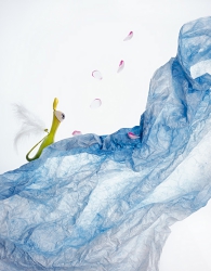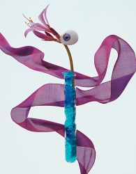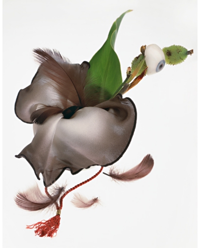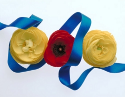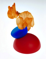 Kao'ru établi des relations entre les couleurs naturelles des fleurs et celles, artificielles, des objets produits par l'homme: le rouge et le bleu qui expriment la vie.